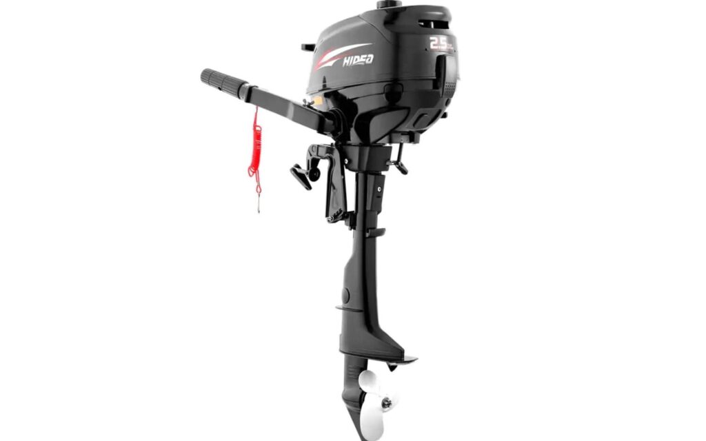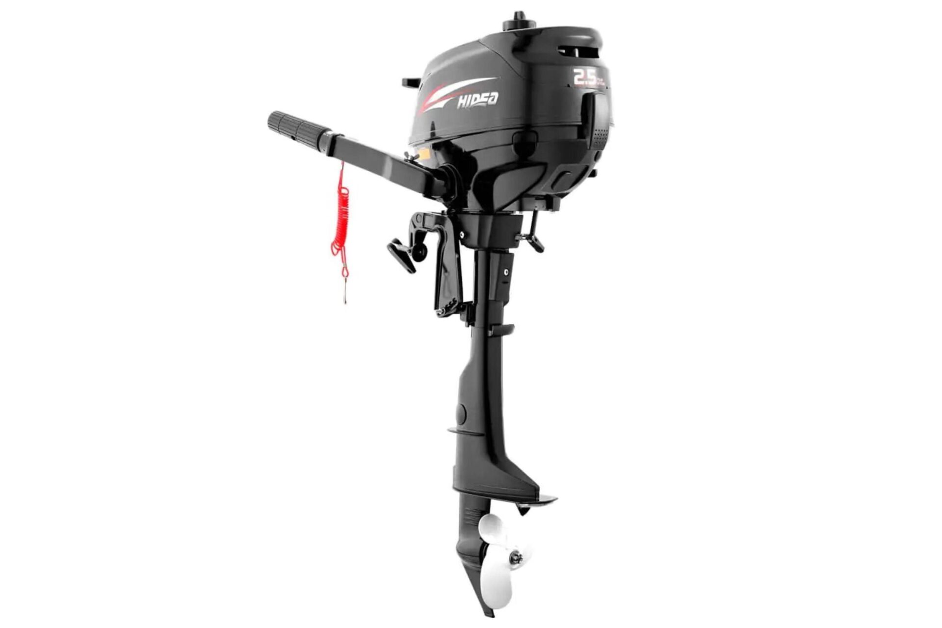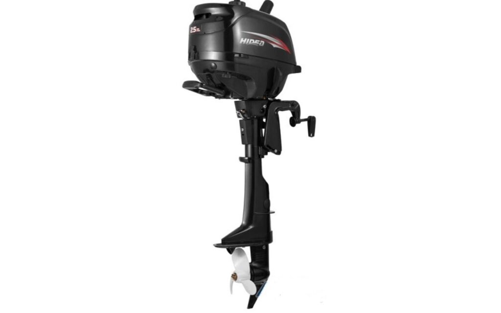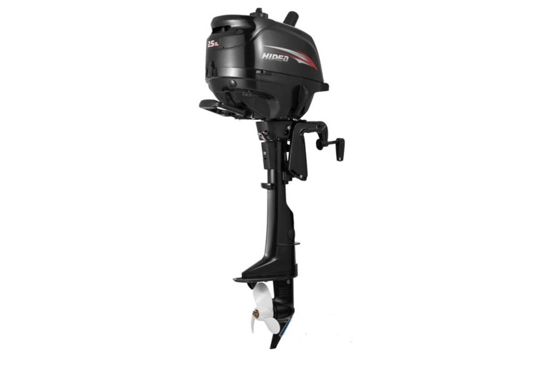 Подвесной 4-х тактный бензиновый лодочный мотор Hidea HDF 2,5 HS — бюджетный универсальный вариант для небольших лодок или лодок, требующих небольших мощностей с фиксированным или съемным транцем.